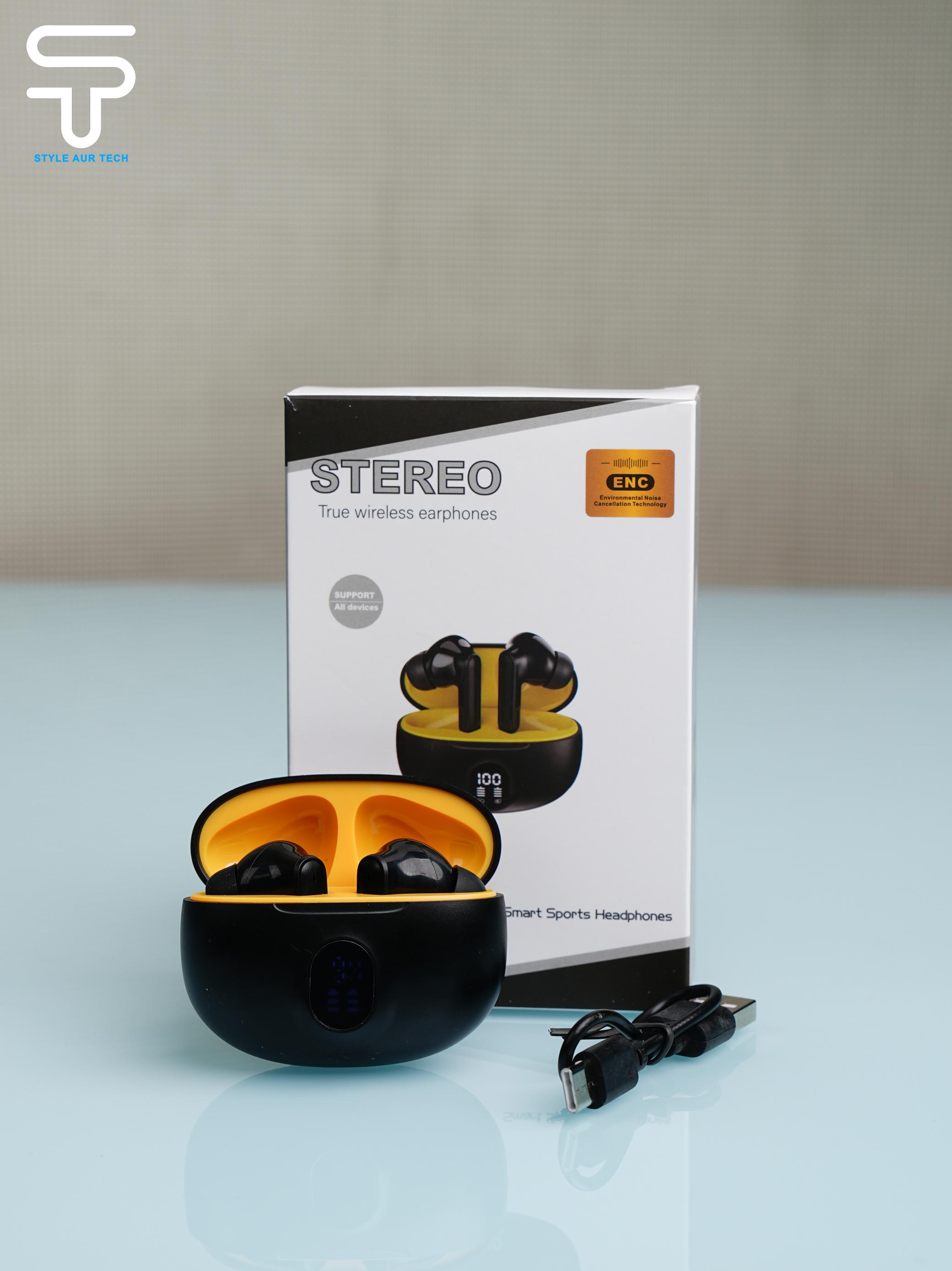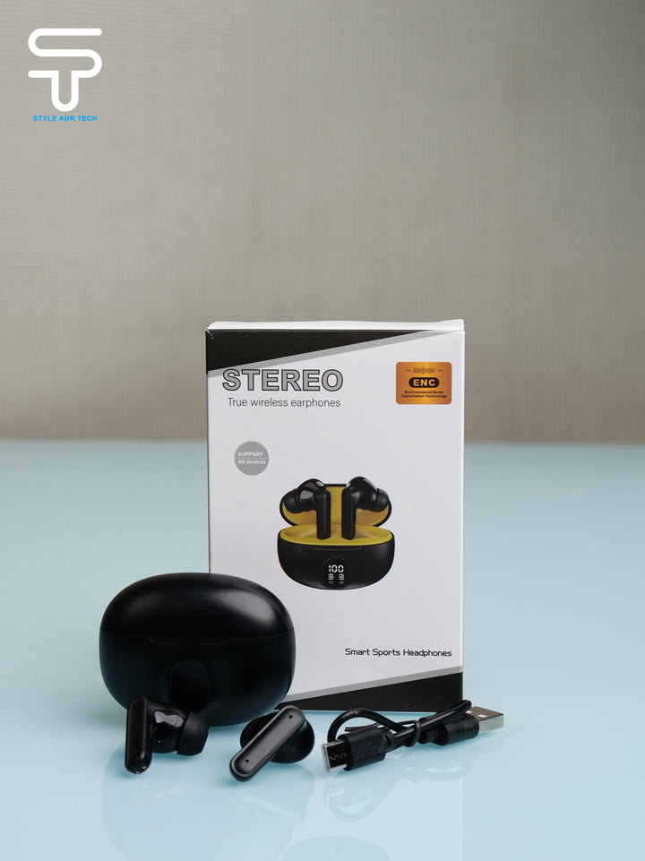 These Stereo ENC TWS Earbuds combine a stylish yellow–black design with premium sound, clear calling, long battery backup, and modern features. Designed for sports, gym, travel, and daily music lovers, they deliver reliable performance and stable connectivity on both Android and iOS.